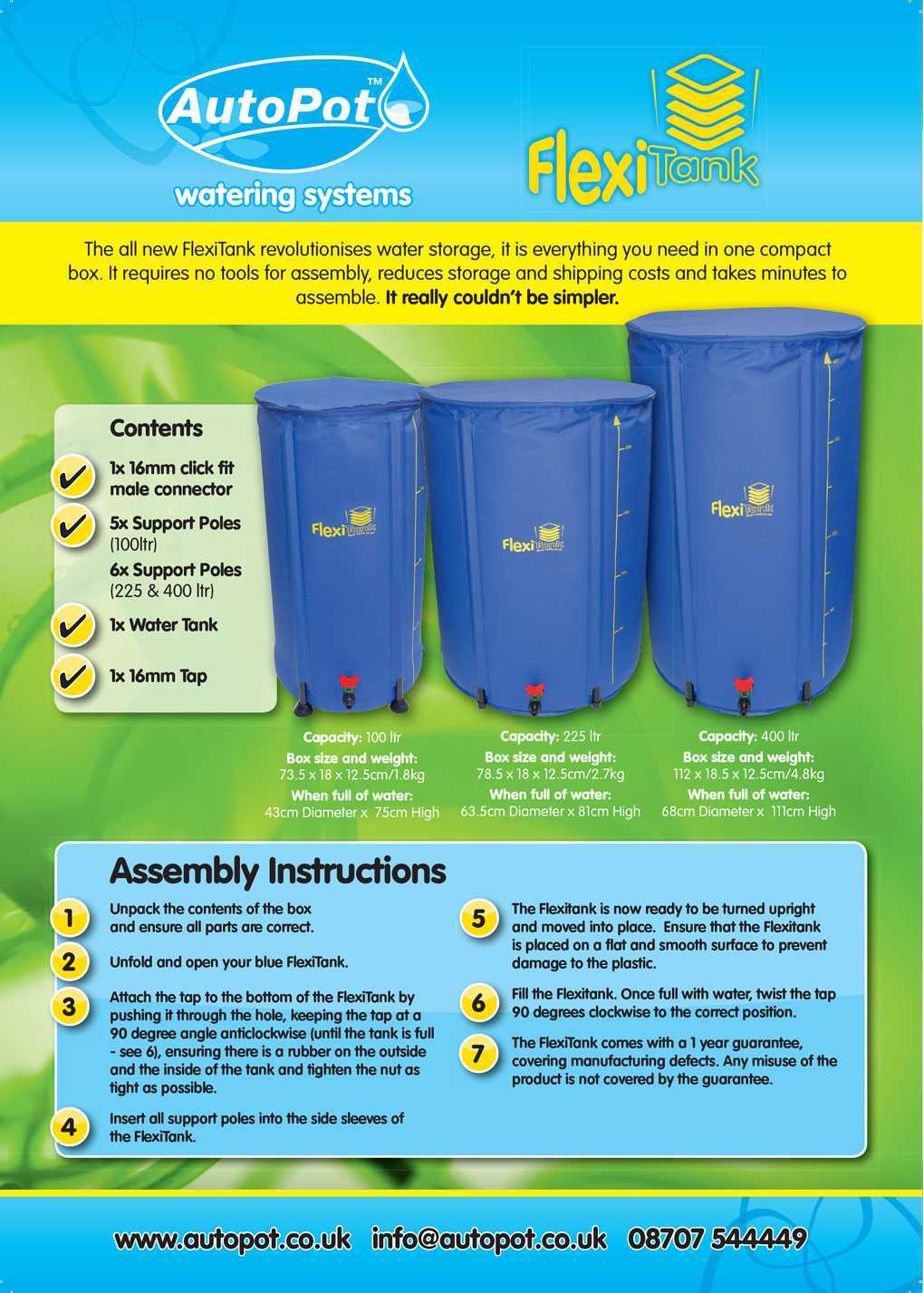 - Flat pack-fits in to spaces where other tanks do not fit